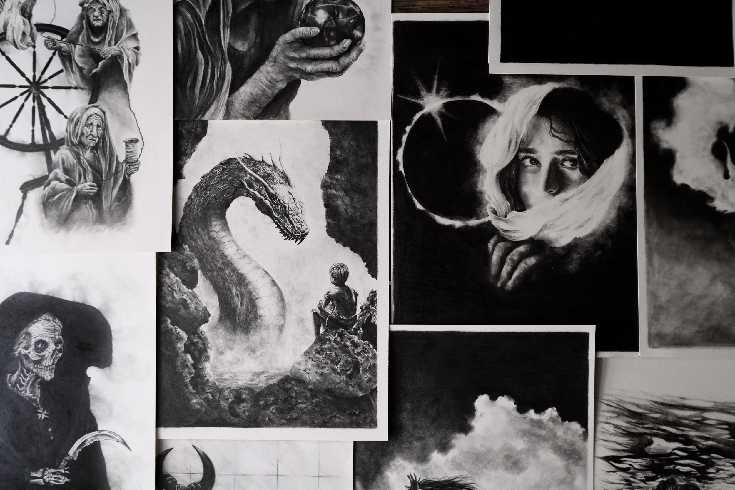 Luana Montebello (b.1992) is a self-taught artist based in Malta. The core of her practice pushes towards the pinnacle of hyperrealism, striving to seek a balance between the solemnity of precision and the capriciousness of play. Each medium, with its unique characteristics, is used to convey a different form of expression. Using her preferred materials of graphite and charcoal, her work explores the beauty and subtleties of forms, from the vast landscapes of the human figure, to the silent bones beneath, all while amplifying the emotions at the core of the human experience. Luana also works with pen and ink using the stippling technique, studying the relationship between objects and the natural world, one single dot at a time.